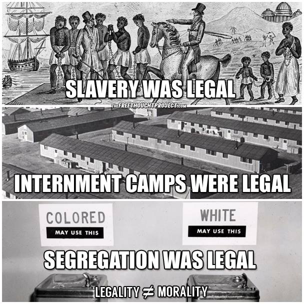 Slavery was legal, internment camps were legal, segregation was legal.