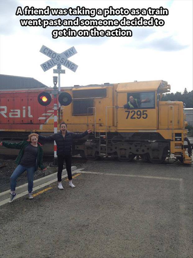 A friend was taking a photo as a train went past and someone decided to get in on the action