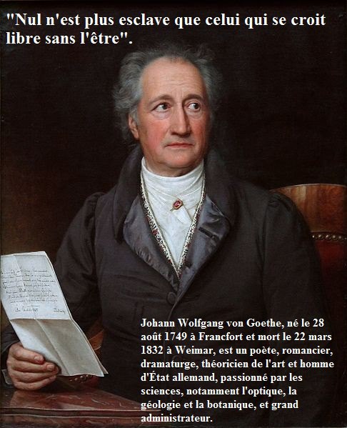 Nul n'est plus esclave que celui qui se croit libre sans l'être. (Goethe)