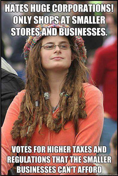 Votes for higher taxes and regulations that the smaller businesses can't afford.