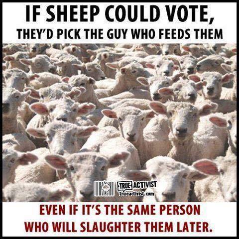 If sheep could vote, they'd pick the guy who feeds them. Even if it's the same person who will slaughter them later.