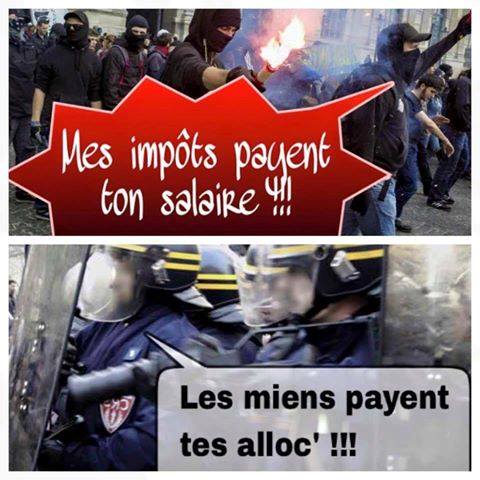 Les impôts des racailles payent les salaires des CRS, les impôts des CRS payent les allocations des racailles. C'est le cercle de la vie socialiste.