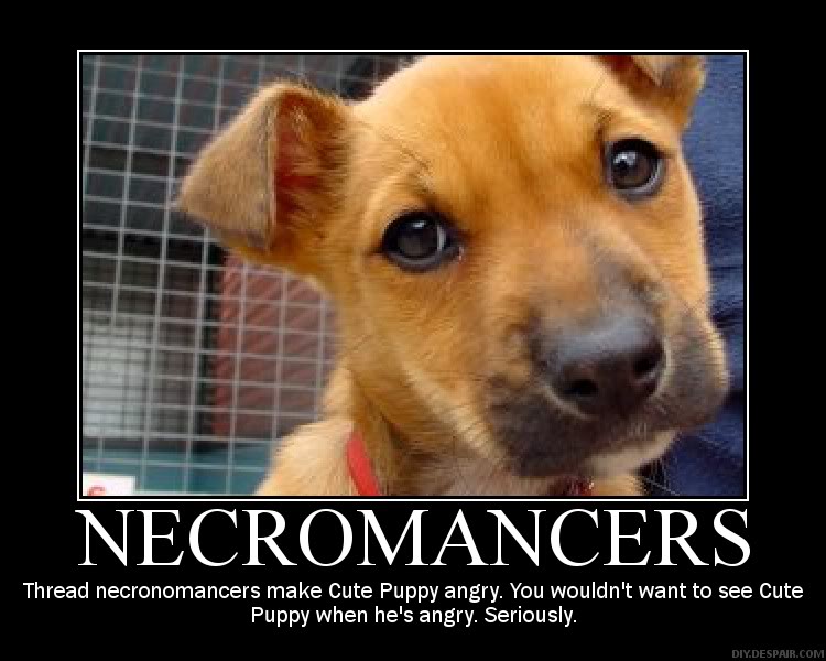 Thread necromancers make Cute Puppy angry. You wouldn't want to see Cute Puppy when he's angry. Seriously.