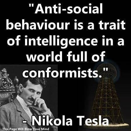 Anti-social behavior is a trait of intelligence in a world full of conformists. -- Nikola Tesla