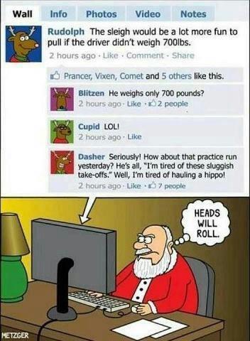 Rudolph: - The sleigh would be a lot more fun to pull if the driver didn't weigh 700 lbs.