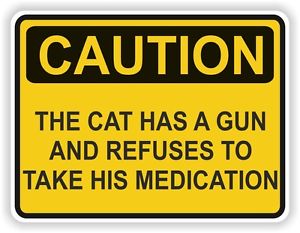 The cat has a gun and refuses to take his medications