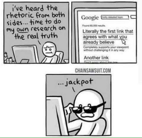 *clicks the first link aka "literally the first link that agrees with what you believe - completely supports your viewpoint without challenging it in any way"*