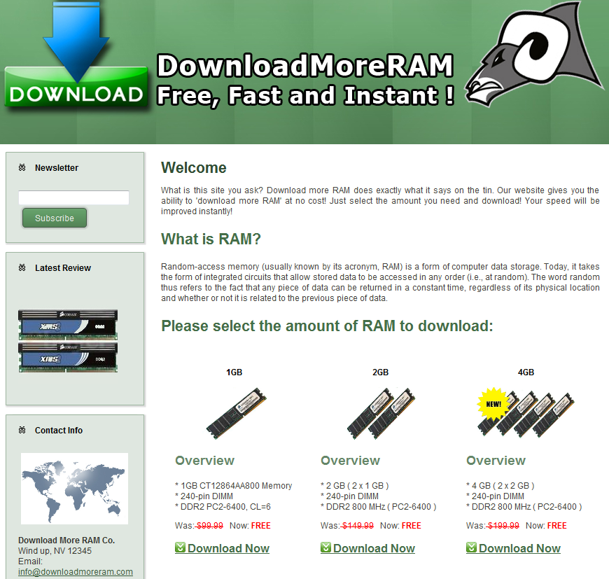 And just in case you're really not a computer person, no you cannot actually download RAM. As of today (can't vouch for the future if they happen to drop their domain name), this site is just a harmless joke site
