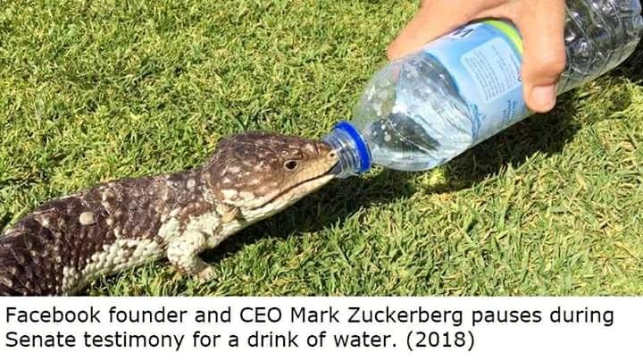 Facebook founder and CEO Mark Zuckerberg pauses during Senate testimony for a drink of water
