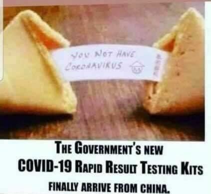They look like fortune cookies, and either say "you not have coronavirus" or "you have won".