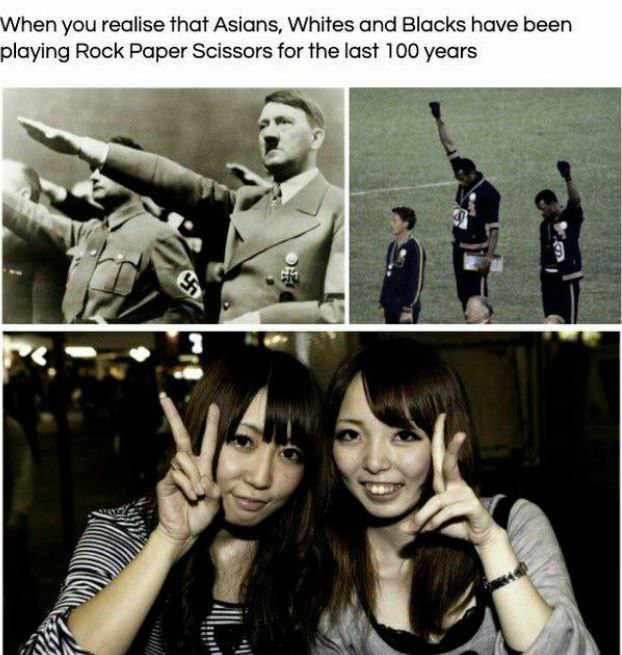 When you realize that Asians, Whites and Blacks have been playing Rock Paper Scissors for the past 100 years...