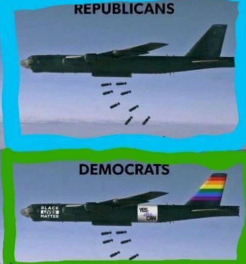 The Democrat bomber carries Black Lives Matter, Yes We Can and Gay Pride stickers